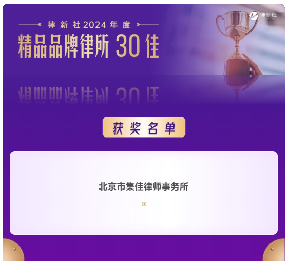 >亿万28>关于我们>荣誉概览>2025>亿万28入选律新社2024年度“精品品牌律所30佳” 集佳代理案例获评“律新社2024年度标杆案例”
